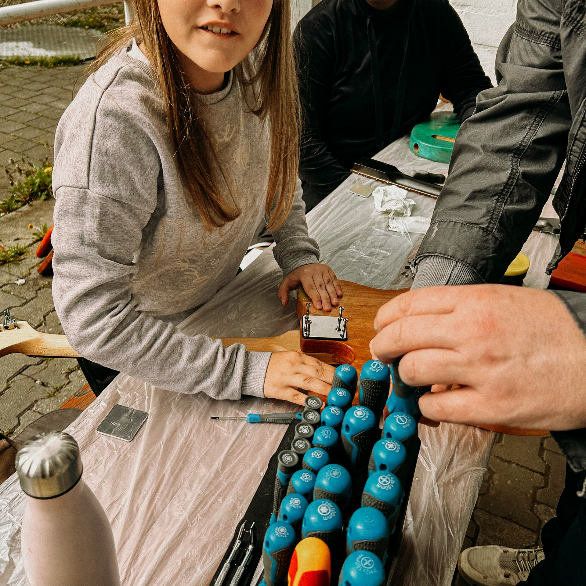 Die Kids haben ihre eigene Telecaster gebaut. Aus bereitgestelltem Material, mit viel Geduld, Neugier und richtig guten Ideen. Jede Gitarre ist ein Unikat geworden.